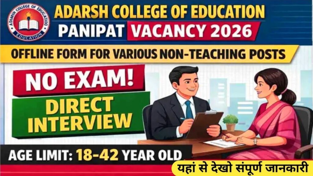 Adarsh ​​College of Education Panipat Recruitment 2026: Adarsh ​​College of Education, V.P.O. Dehra (Samalkha), Panipat, affiliated with BSEH, Bhiwani, and approved by NCTE & SCERT, Gurugram, has issued a notification for the position of Various Non-Teaching. The recruitment drive comprises  18 vacancies. All eligible and interested candidates are advised to carefully read the official notification and apply before 09-05-2026, the last Date. All relevant information regarding the Adarsh ​​College of Education, Panipat, Recruitment 2026 is provided below.
