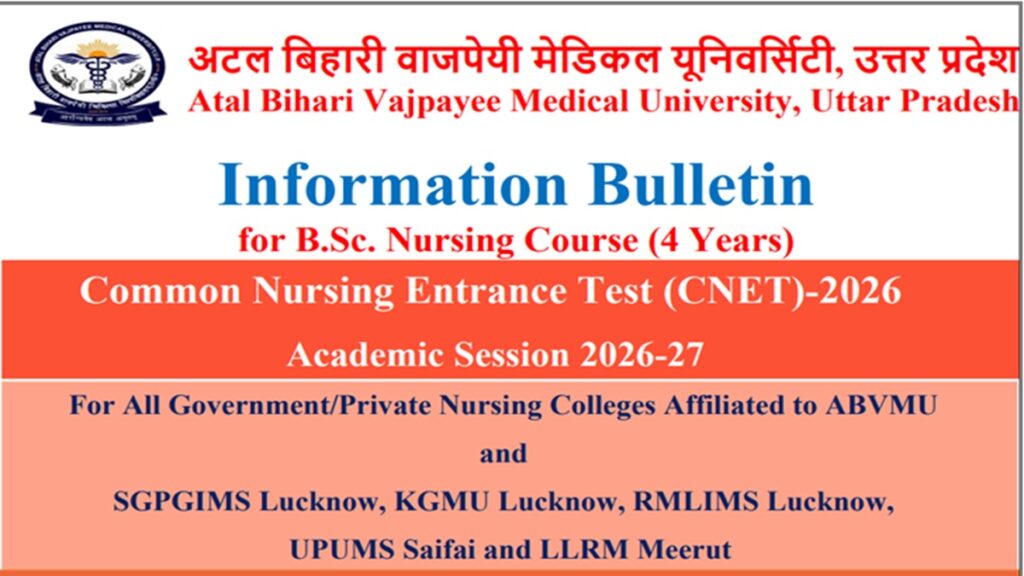 Interested Candidates Can Read the Full Notification Atal Bihari Vajpayee Medical University (ABVMU), Uttar Pradesh Uttar Pradesh Common Nursing Entrance Test CNET 2026 UP CNET Exam 2026: Short Details of Notification