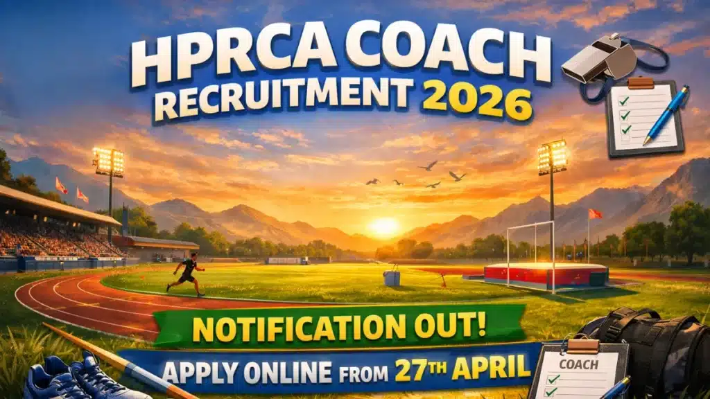 | Name of Post: Coach (Various Sports) | Total Posts: 14 | Application Mode: Online Short Information: The Himachal Pradesh Rajya Chayan Aayog (HPRCA) has released the official notification for the recruitment of Coach (Various Sports) posts in Sports Hostels. Eligible candidates can apply online from 27 April 2026 to 19 May 2026 through the official website hprca.hp.gov.in. |