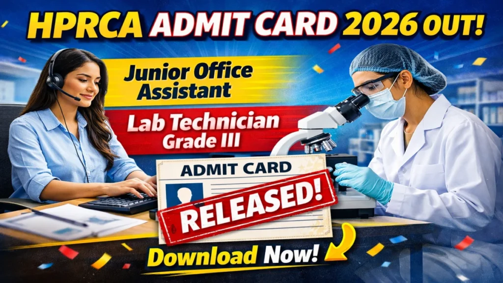 | Name of Post: Junior Office Assistant (Library) & Medical Laboratory Technician Grade III | Admit Card: Released | Exam Mode: Computer Based Test (CBT) Short Information: The Himachal Pradesh Rajya Chayan Aayog (HPRCA) has released the HPRCA Admit Card 2026 on 16 April 2026 for the posts of Junior Office Assistant (Library) and Medical Laboratory Technician Grade III. Candidates who have applied can download their admit card from the official website. The CBT exam is scheduled for 25 April 2026. |