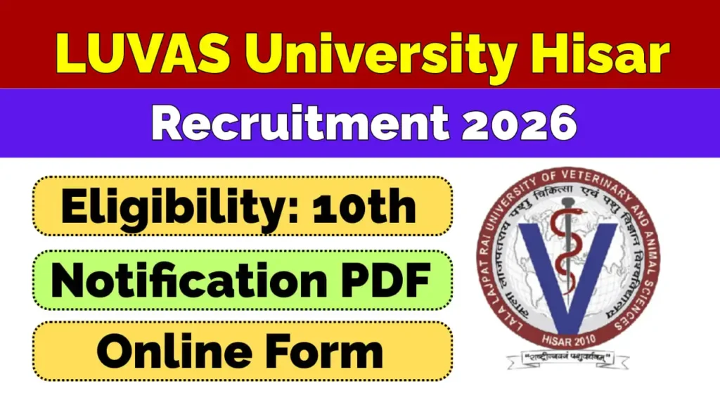 LUVAS Teaching Vacancy 2026:Lala Lajpat Rai University of Veterinary and Animal Sciences (LUVAS), Hisar, has issued an important update. The university has decided to reopen the application process for the Teaching Posts Recruitment 2024 (Advt. No. 3/2024 & 4/2024).