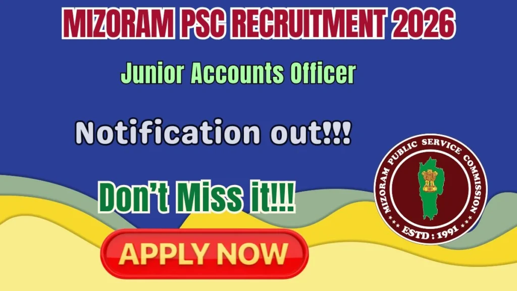 Short Information: The Mizoram Public Service Commission (Mizoram PSC) has released the official notification for the recruitment of Junior Accounts Officer (JAO) posts. Eligible candidates can apply online through the official website by 05 June 2026 with read the full notification carefully before applying.