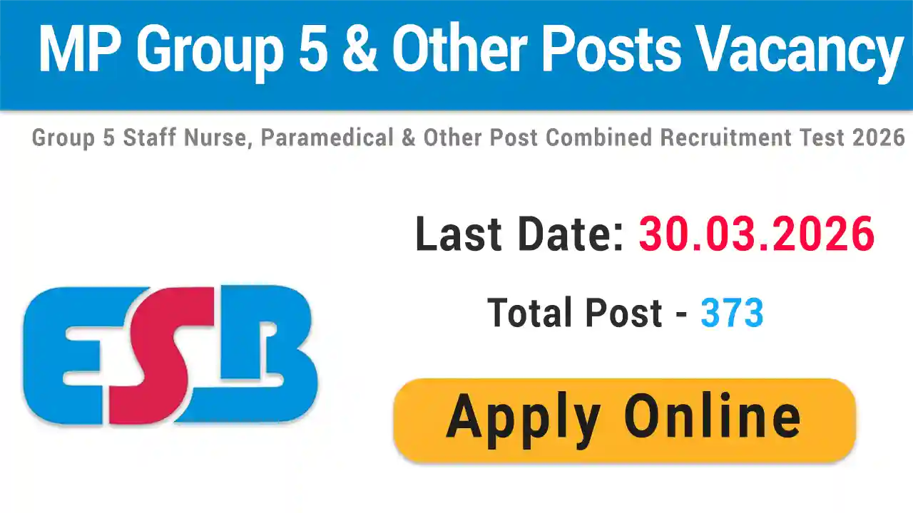 | Madhya Pradesh Employee Selection Board (MPESB) has relased Group 5 Staff Nurse , Paramedical and Other Post Combined Notification 2026. Those candidates who are Interested in this MPESB Group 5 Staff Nurse , Paramedical and Other Post Combined Exam 2026 can Apply Online from 16/03/2026 to 30/03/2026. Read the notification for recruitment eligibility, post information, selection procedure, Practice Test, pay scale and all other information. |