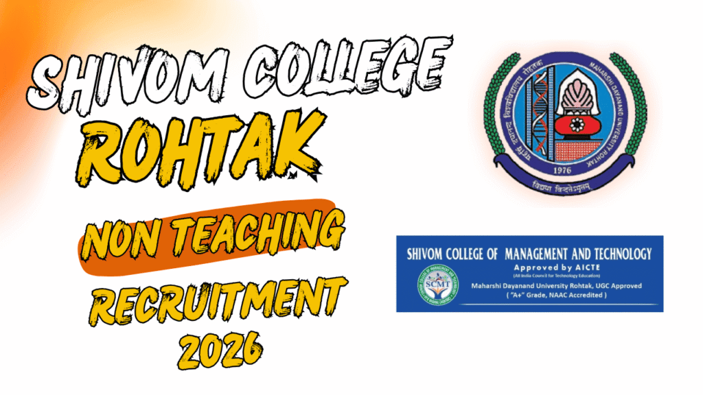 Shivom College Rohtak Recruitment 2026:- The Shivom College of Management & Technology, Nigana, Rohtak Affiliated to M.D. University, Rohtak has released a recruitment notification for filling up vacant posts of Peon, Safai Karamchari, Technical Assistant, Clerk, Typist, Computer Operator, Library Attendant, Librarian, Lab Attendant and Various Post vide Advt. No….. Eligible / Interested candidates can apply in prescribed application format on or before 14.04.2026 using given link below. Other details like educational qualification, age limit, selection process & how to apply are given below